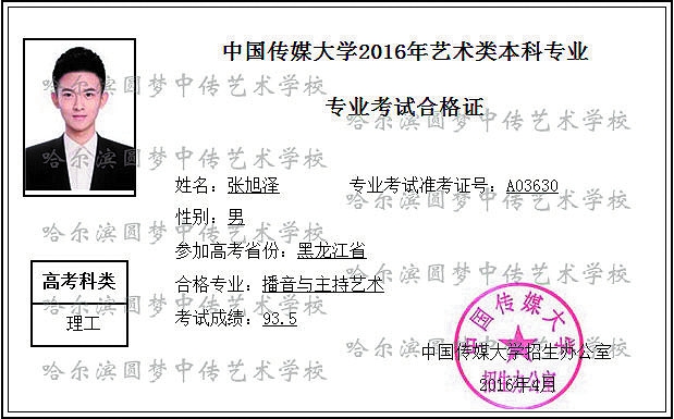 近日,有“传媒黄埔”之称的211名校——中国传媒大学发布2016年艺考成绩。来自我省的考生张旭泽(毕业于北安市一中,培训于“哈尔滨圆梦中传艺术学校”)凭借超强的专业水平,勇夺中传播音主持艺术专业状元!这已经是继2014年纪涵博(毕业于哈工大附中)夺得中传播音状元之后,2015年张舒越(毕业于哈三中)夺得中传播音状元之后,黑龙江连续三年获得此项殊荣!同时,张旭泽还获得了中央戏剧学院播音全国第2和上海戏剧学院播音全国第2的傲人成绩! 播音主持专业是中国传媒大学的招牌专业,多数著名主持人和播音员均毕业于中传播音,这次张旭泽能以93.5分的超高分从全国数十万播音考生中脱颖而出,连续第三年为我省夺得状元,充分说明了黑龙江考生的素质之高! 据了解,张旭泽、张舒越与纪涵博三个中传状元,均出自艺考培训界的老牌名校——哈尔滨“圆梦中传艺术学校”。消息一出,迅速传遍百度贴吧和各大网上论坛,全国艺考界、播音界都被震惊,要知道全国艺考培训机构成千上万,任何艺考培训能培养出一次中传状元已属难得,而“圆梦中传”居然2014、2015、2016连续三年获得,并且仅凭一省学生之力,秘诀在哪里? 笔者经过采访“圆梦中传艺术学校”的老师和学生家长后得知,中传、浙传等名校总是青睐黑龙江考生的原因主要有三个,一是因为东北考生先天条件优越,外形佳、声音好,非常适合播音主持专业的学习;二是圆梦的教育理念非常先进,师资不仅包括省内的著名主持人和各大学考官,而且还从北京、南京等地聘请名校考官来哈市授课,同时采取15人小班的中传播音授课模式,委派老师进行北京、长春等地的全程陪考,这些对学生专业水平的迅速提高和考试临场发挥起到了很好的作用!正因如此,我省今年仅“圆梦中传”一家学校就已暂时获得64张中传合格证(包括中传播音全国第四名李子琪)、160张浙传合格证,超过了很多省的全省合格证总和。 据了解,因为“圆梦中传”连续多年成为全国艺考培训升学名列前两名的学校,除我省考生外,还有吉林、辽宁、内蒙、山东、河南、河北、浙江等地的学生在此学习,并获得优异成绩。一条艺考经济链已经在我省形成并迅速发展。 在这里,小编祝愿张旭泽和64个获得中传合格证、160个获得浙传合格证的黑龙江圆梦学子,在接下来的两个月高考复习时间里努力学习文化课,争取再接再厉,顺利被中传、浙传等名校录取。更希望张旭泽、张舒越、纪涵博等圆梦中传的毕业生,能在将来快速成长,成为央视主播,为黑龙江人增光添彩,为我国传媒事业发展做出贡献!