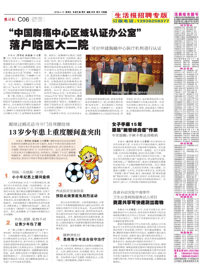 “中国胸痛中心区域认证办公室”落户哈医大二院