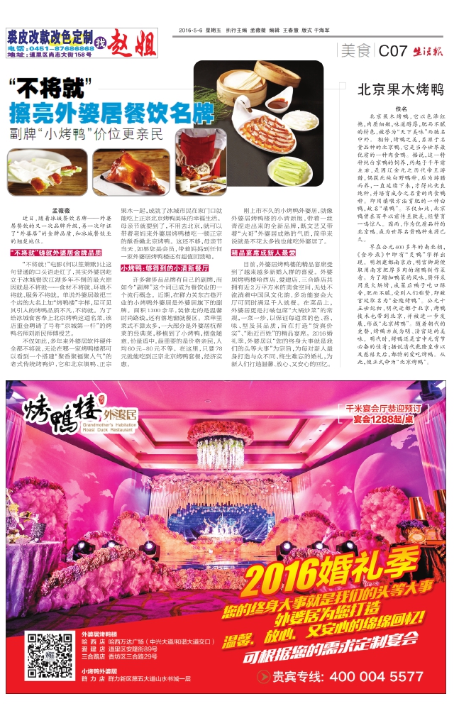 “不将就”擦亮外婆居餐饮名牌