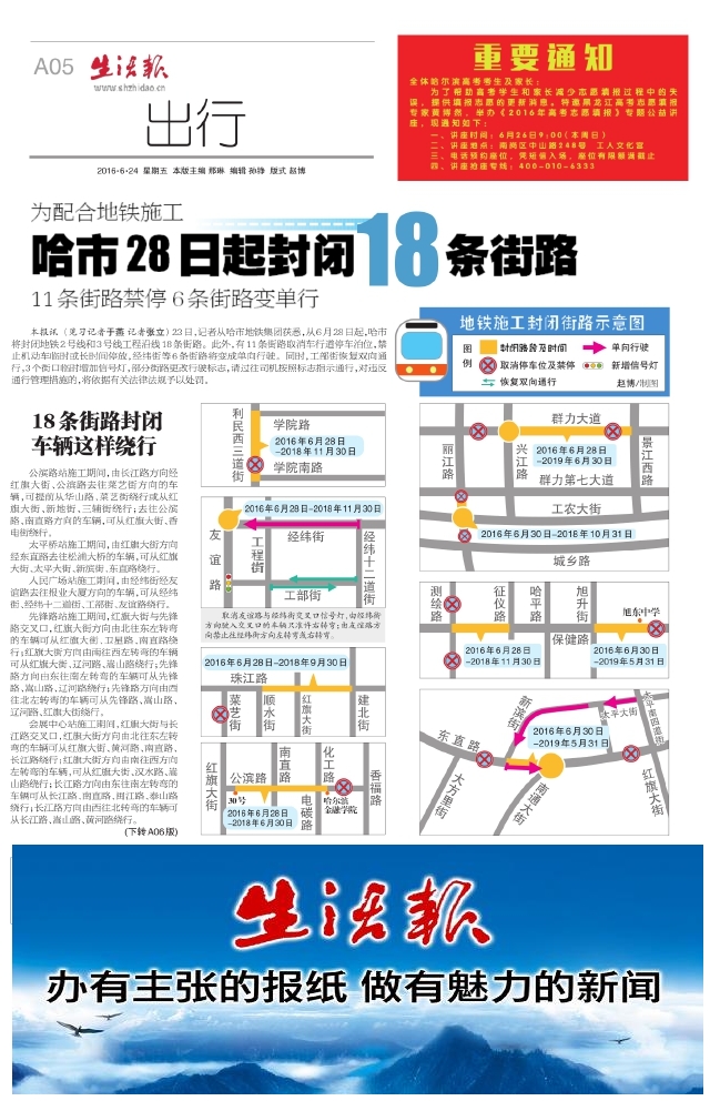 哈市28日起封闭18条街路