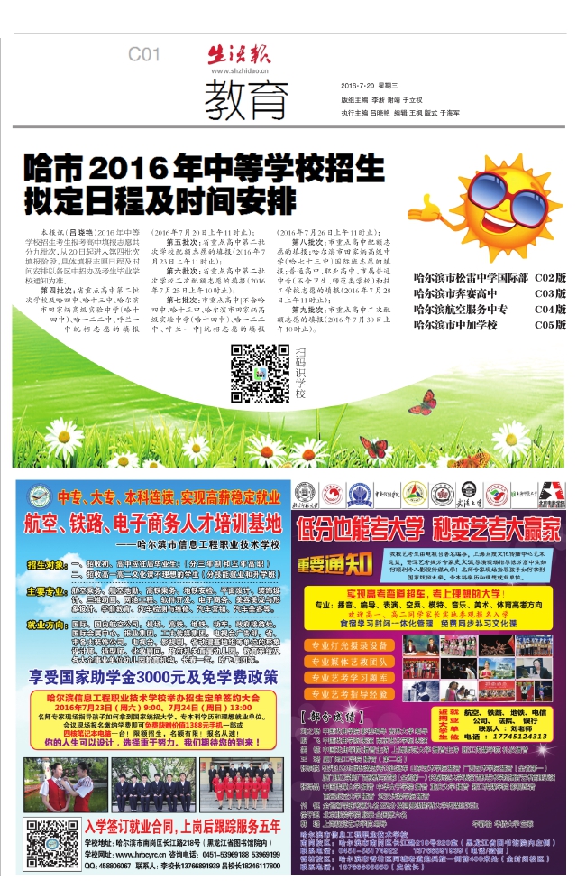 哈市2016年中等学校招生拟定日程及时间安排