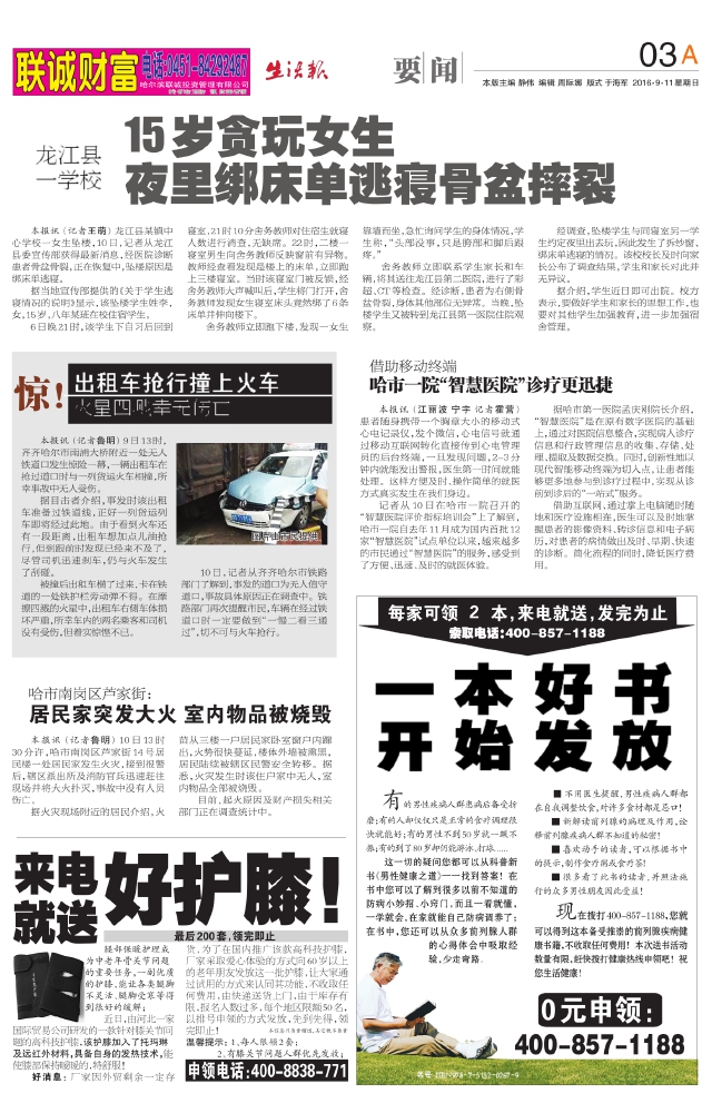 15岁贪玩女生夜里绑床单逃寝骨盆摔裂