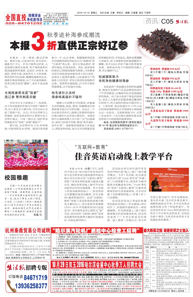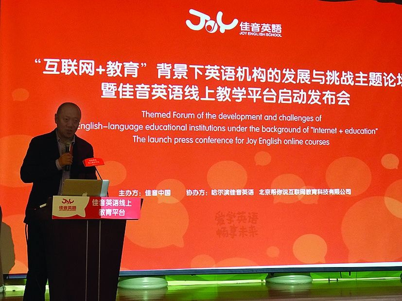 本报18日讯(小新)今日,由佳音中国主办、哈尔滨市佳音英语学校与北京帮你说互联网教育科技有限公司共同协办的“互联网+教育”背景下英语机构的发展与挑战主题论坛,暨佳音英语线上教学平台启动发布会在哈尔滨落幕。作为全国十佳英语教育机构之一,佳音英语正在颠覆传统英语教育,开启互联网+教育的新时代。此次“互联网+教育”背景下英语机构的发展与挑战主题论坛上,多位资深专家围绕《2015-2016中国教育培训行业蓝皮书》、语言教育是否已真的无“新”可创、如何利用“互联网+教育”促进英语教育的发展等主题进行深度剖析,并就此展开研讨。 活动协办单位哈尔滨市佳音英语学校打造“线上+线下”混合教学模式。今年7月开始,哈尔滨佳音英语引进“Ut al k帮你说”外教1对1口语授课平台,将其作为教学服务全面覆盖各分校。“Ut al k帮你说”依托“互联网+教育”打破传统教育的时空及资源限制,完全同步线下实体课堂的线上(外教1对1)口语课程。 佳音英语黑龙江事业机构董事长陈佐东指出:“在互联网+的大时代下,在线教学逐渐成为一种发展趋势。作为首家线上+线下混合教育模式的英语教育机构,佳音英语受到了广大学生和家长的喜爱。线上教育一经推出后,家长争先恐后参与其中,学生反馈极佳。真实的外教、完全同步课堂教学、清晰的画面及声音,令学生的英语成绩和能力有了明显的提升。佳音英语将利用Ut al k帮你说国际化的学习平台和专业的技术,完美结合线下课堂,为所有佳音的孩子呈现最优质的教育。”