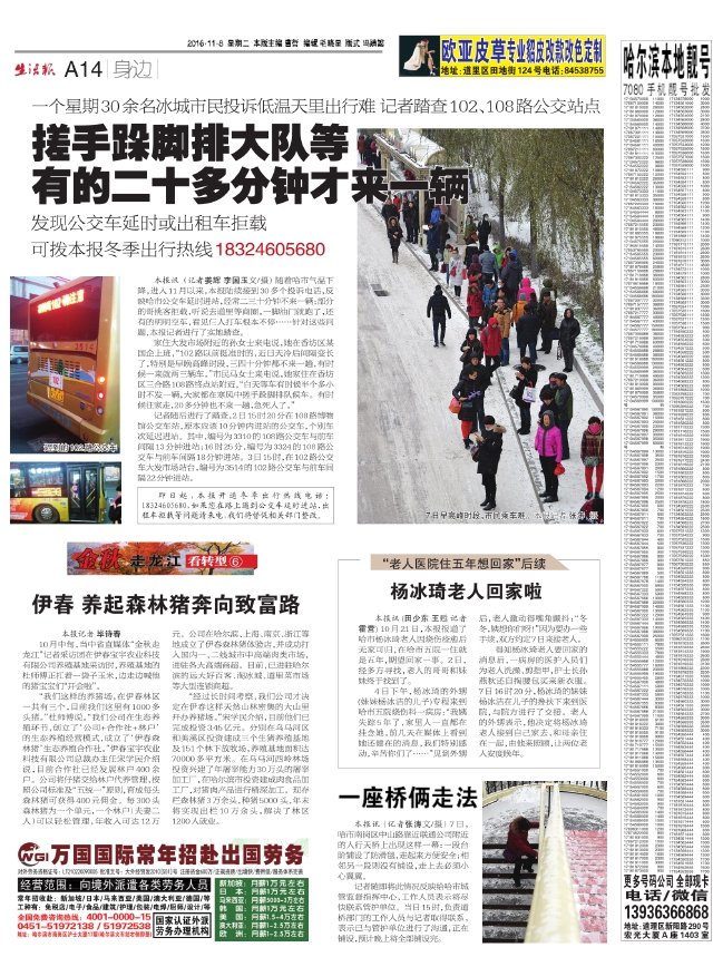 搓手跺脚排大队等有的二十多分钟才来一辆