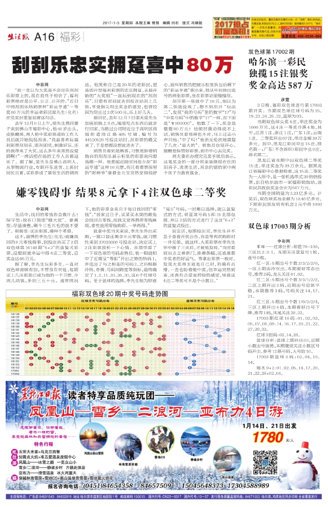 哈尔滨一彩民独揽15注银奖奖金高达587万