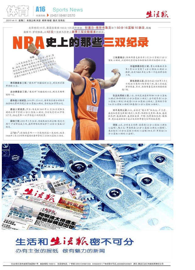 司扬 三双是指球员在一场比赛中,得分、篮板、助攻、抢断和盖帽这5 项数据统计中的3项达到两位数,通常都是得分、篮板和助攻,但抢断和盖帽也会被算在统计中。这里我们将盘点NBA历史上关于三双的各项纪录。 季后赛最多三双:“魔术师”约翰逊的30次,现役则是勒布朗的16次。 总决赛最多三双:“魔术师”约翰逊的8次,现役是勒布朗的7次。 最年轻三双球员:2005年1月19日,勒布朗在骑士对阵开拓者的比赛中拿到27分11篮板10助攻,当时他20岁零20天。 最老三双球员:卡尔·马龙在2003年11月28日对阵马刺的比赛中拿到10分11篮板10助攻,当时他已经40岁零127天,他也是唯一40岁还能三双的球员。 最快三双:1955年2月20日,雪城民族队的吉姆·塔克只用了17分钟达成三双,最终那场比赛他拿了12分10篮板12助攻。 三“20+”:张伯伦是唯一一个能做到这一成就的,他在1968年2月2日对阵活塞的比赛中拿到了22分25篮板21助攻。 三双最高分:维斯布鲁克在今年3月29日拿到57分13篮板11助攻,此前的纪录是哈登和张伯伦共同保持的53分。 不包括得分的三双:勇士的格林在今年2月10日拿到了4分12篮板10助攻10抢断,这是NBA历史上唯一不包括得分的三双。 最长连续三双:张伯伦在1968年3月8日到20日连续9场拿到三双,第二长的是罗伯特森、乔丹、维斯布鲁克共同保持的连续7场。 队友共同砍三双:3次,分别是活塞的布彻(19分15篮板15助攻)和斯科特(23分20篮板11助攻)、公牛的乔丹(41分10篮板11助攻)和皮蓬(15分10篮板12助攻)、篮网的卡特(46分16篮板10助攻)和基德(10分16篮板18助攻)。 对手共同三双:9次,分别是“魔术师”和杰夫·卢兰德、基德和德雷克斯勒(两次)、加里·佩顿和克里斯·韦伯、基德和杰伊·威廉姆斯、基德和麦蒂、卡隆·巴特勒和巴朗·戴维斯、奥拉迪波和迈卡威以及维斯布鲁克和阿特托昆博。 四双:4次,分别来自内特·瑟蒙德(22分14篮板13助攻12盖帽)、埃尔文·罗伯特森(20分11篮板10助攻10抢断)、奥拉朱旺(18分16篮板10助攻11盖帽)和大卫·罗宾逊(34分10篮板10助攻10盖帽)。