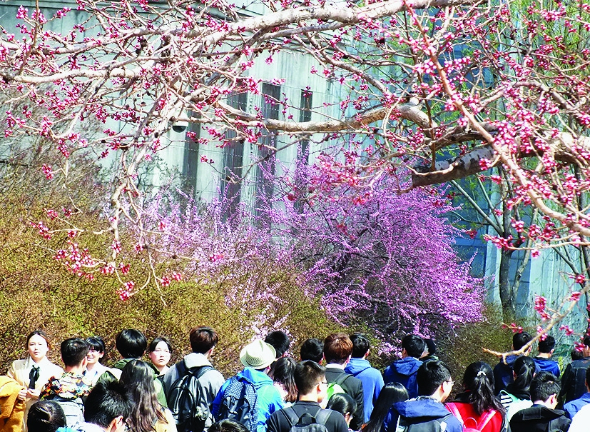 生活报讯(记者时继凯文/摄)随着哈市气温逐渐上升,在寂静已久的枝头,绚丽春花不期而至,绽放含羞般的“芳容”。哈尔滨工程大学校园的“杏花长廊”更是以浪漫花海,展示冰城“醉美”春色盛景。 20日中午,记者在现场看到,这条名为“郑和路”的校园街路上,满眼春花正灿烂。在春日难得的艳阳天气中,游人如织,徜徉花海,感受春回大地的气息。不论莘莘学子还是远道赶来的游客,经过这里的人几乎都要掏出手机,或自拍,或互相依偎合影,更有众多摄影师们端起长枪短炮各展绝活。 据家住附近的老人讲,可能因为所处位置的阳光充足温度稍高,位于校园主楼前的这片春花每年都要比其他地方的提前几天开放,这些有着60多年树龄的老树,每年都会吸引大批游客来此赏花。 哈工程芬芳花海