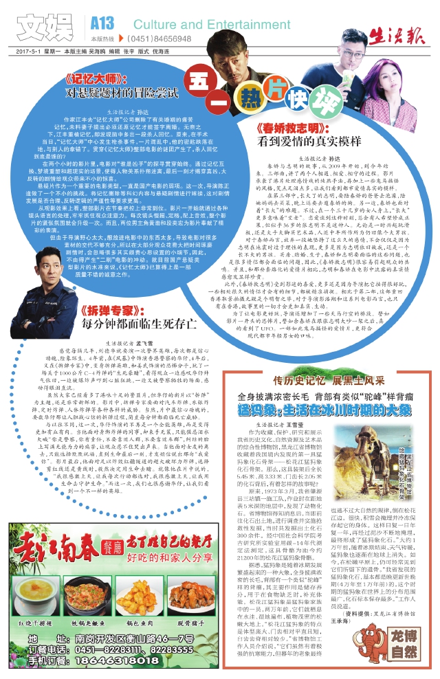 生活报记者王雪莹 作为收藏、保护、研究和展示我省历史文化、自然资源及艺术品的综合性博物馆,黑龙江省博物馆收藏着我国境内发现的第一具猛犸象化石骨架——松花江猛犸象化石骨架。那么,这具装架后全长5.45米、高3.33米、门齿长2.05米的化石背后,有着怎样的故事呢? 原来,1973年3月,我省肇源县三站镇一施工队,作业时在距地表5米深的地层中,发现了动物化石。省博物馆得知消息后,当即前往化石出土地,进行调查并实施抢救性发掘,当时共发掘出土化石300余件。经中国社会科学院考古研究所实验室用碳-14年代测定法测定,这具骨骼为距今约21200年的松花江猛犸象骨骼。 据悉,猛犸象是随着冰期发展繁盛起来的一种大象,全身披满浓密的长毛,背部有一个类似“驼峰”样的背瘤,其主要作用是储存养分,用于在食物缺乏时,补充体能。松花江猛犸象是猛犸象家族中的一员,两万年前,它们就栖息在水洼、湿地遍布,植物茂密的松嫩大地上。“松花江猛犸象的特点是体型庞大、门齿相对平直且短,臼齿齿脊相对较少。”省博物馆工作人员介绍说,“它们虽然有着极强的抗寒能力,但暮年的老象最终也逃不过大自然的规律,倒在松花江边。很快,积雪会掩埋并冷冻保存起它的身体。这样日复一日年复一年,再经过泥沙不断地掩埋,最终形成了猛犸象化石。”大约1万年前,随着冰期结束、天气转暖,猛犸象也逐渐在地球上消失。如今,在松嫩平原上,仍可经常见到它们所留下的遗骨。“我省发现的猛犸象化石,基本都是晚更新世晚期(4万年至1万年前)的,这个时期的猛犸象在世界上的分布范围最广,化石标本保存最多。”工作人员说道。 (资料提供:黑龙江省博物馆王承海)