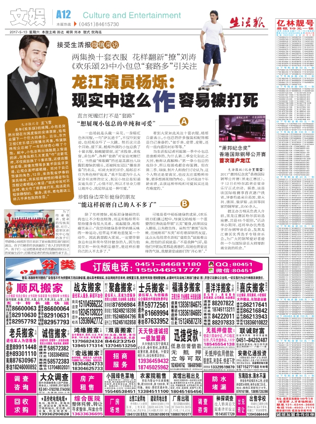 生活报记者孟飞雪 去年《欢乐颂》的结尾,小包总突然出现在出国度假的安迪面前,给观众留下一个巨大的悬念。近日,东方卫视《欢乐颂2》刚播出两集,导演就将观众忍耐了一年的好奇心喂了个饱。剧中,小包总刚出场就爬上安迪的床,在海岛那几天更是“作”出新花样,不仅疯狂换了十套衣服,还使出撒娇卖萌、装傻充愣等多重手段追求安迪,让观众直呼辣眼睛。而对于自己饰演的角色,12日,来自我省伊春的演员杨烁,用其低哑磁性的嗓音和生活报记者唠起心里话:“现实中我可不这样,他太作了容易被打死,我还是比较安静型的。健身、读书、看电影这三样几乎承包我的生活。” A 直言死缠烂打不是“套路” “想展现小包总的单纯和可爱” 一出场就是头戴一朵花,一身暗红色休闲服,一句“萨瓦迪卡”,不仅吓到安迪,也把观众吓了一大跳。然而这只是个开始,接下来,杨烁饰演的小包总换了十套衣服,装瘸腿留宿,还“求投靠、求收留、求包养”,各种“套路”对安迪死缠烂打。当然最“辣眼睛”的还是其露出八块腹肌撩妹的镜头,还被网友冠以“搔首弄姿”的名头。听到大家的评价,杨烁忍不住为角色辩护起来,“我不知道为什么大家会有这样的定义,其实小包总是知道安迪失恋了,心情不好,所以才尽全力想让她开心,我觉得这是一种可爱。” 看到大家如此关注十套衣服,杨烁自豪表示,小包总的许多服装和配饰都是自己准备的,“如手表、皮带、皮鞋,还有一些内搭的衬衫等等。” 当生活报记者问起第一季中小包总是蛮酷帅的,为什么第二季变化如此之大时,杨烁认真解释:“第一季小包总的戏份少,所以每场戏都会有强调。但在第二季,导演、制片人和我们讨论认为,这个人物还是要真实,也没太注重酷帅形象,更多想展现他的内心。但对我这个年龄来讲,去演这种单纯和可爱其实还是有难度的。” B 珍惜身边常年健身的朋友 “能这样折磨自己的人不多了” 除了花样撩妹,杨烁那身健硕的肌肉也让不少粉丝眼馋,而这和杨烁常年坚持健身有很大关系。说起健身,杨烁痛苦表示:“我觉得健身是非常枯燥无味的一种运动,经常是不断地重复某一个动作。因此我想跟大家说,一定要珍惜身边有这种常年坚持健身的人,因为他其实有一种优秀的品德在,能这样折磨自己的人不太多了。” 可能是看中杨烁健身的成果,《欢乐颂2》拍摄过程中,导演交给杨烁一个重要的任务就是带领“五美”健身,结果因没人捧场,以失败告终。虽然当“教练”很失败,但杨烁和“五美”却有着深厚的友谊,这点从他经常在剧组“受欺负”就能看出来,按他的话说就是:“不是我脾气好,是他们开的玩笑都是善意的,现场也需要这样的气氛,我愿意变成她们的‘开心果’。”