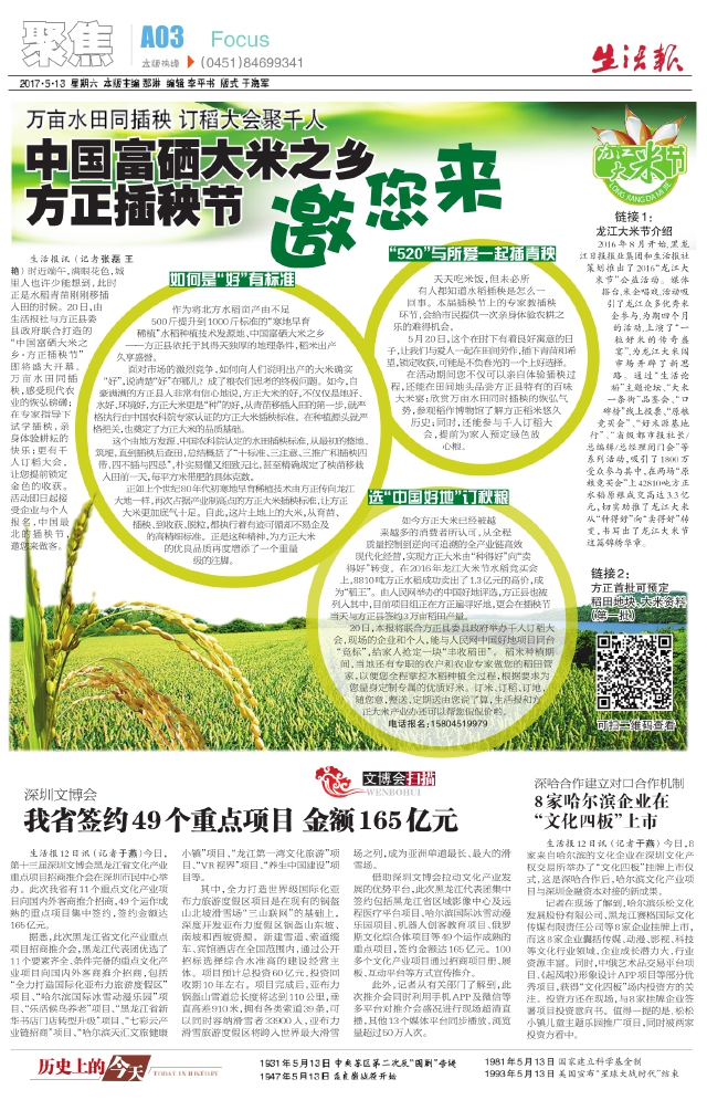 中国富硒大米之乡方正插秧节