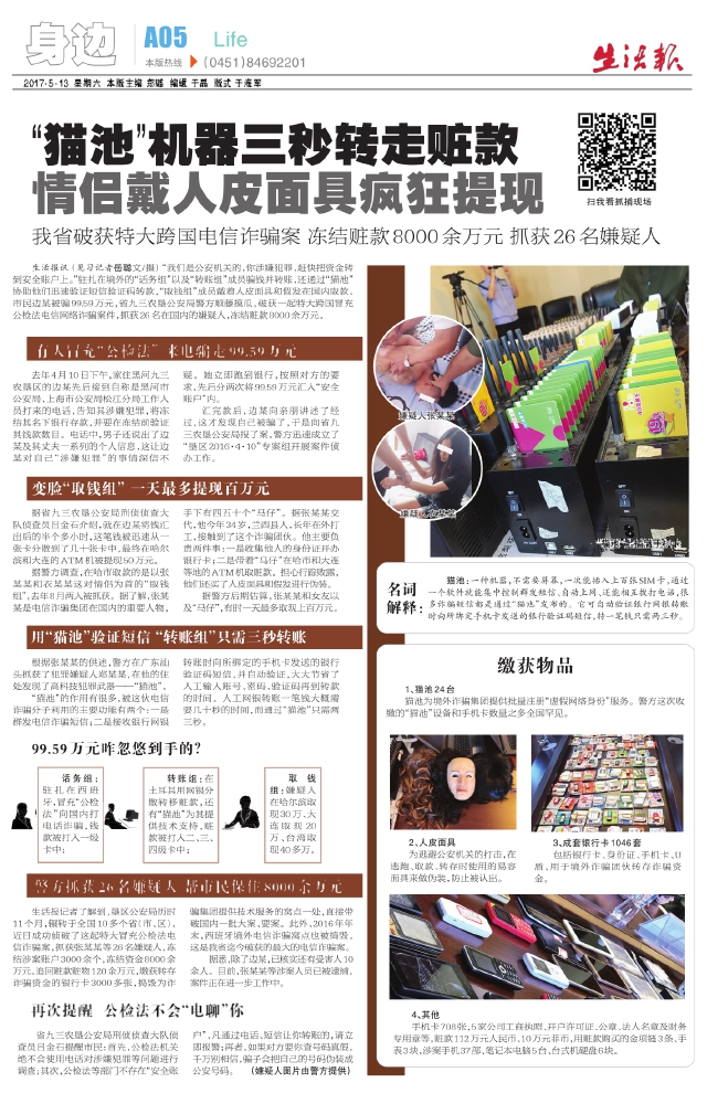 “猫池”机器三秒转走赃款情侣戴人皮面具疯狂提现