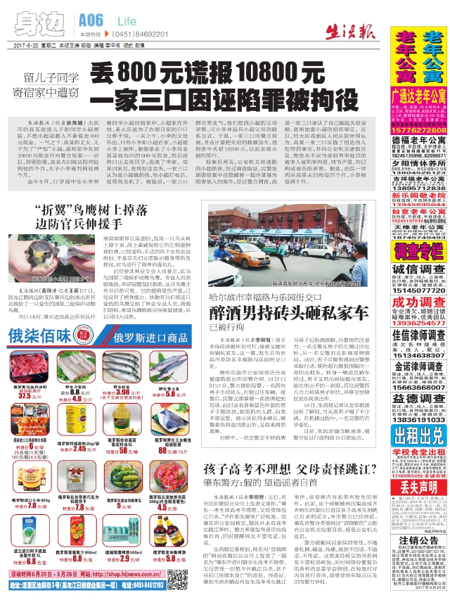 丢800元谎报10800元一家三口因诬陷罪被拘役