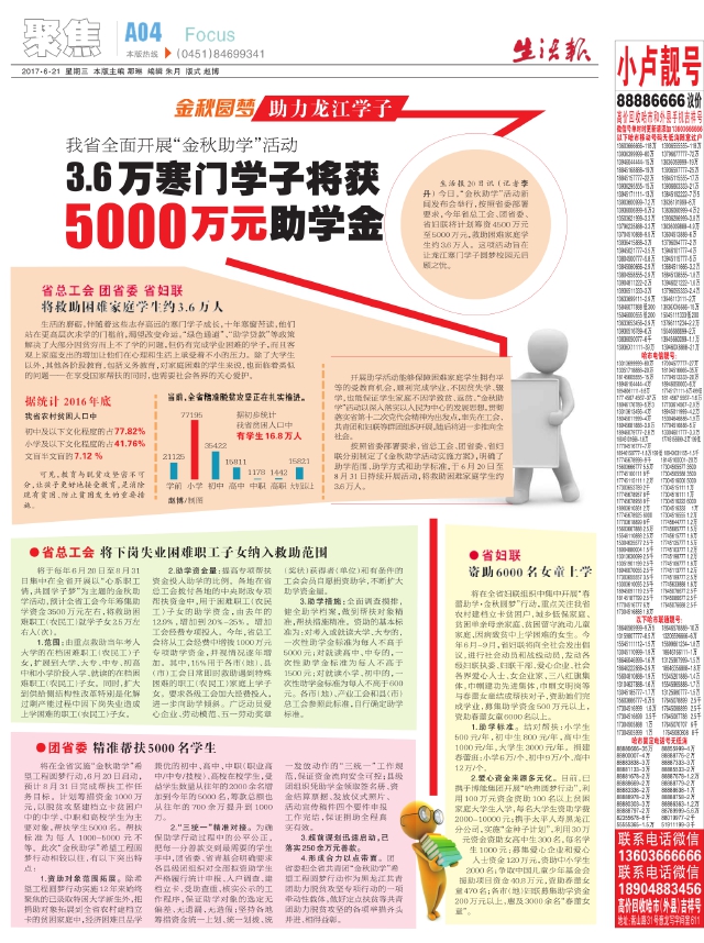 3.6万寒门学子将获5000万元助学金