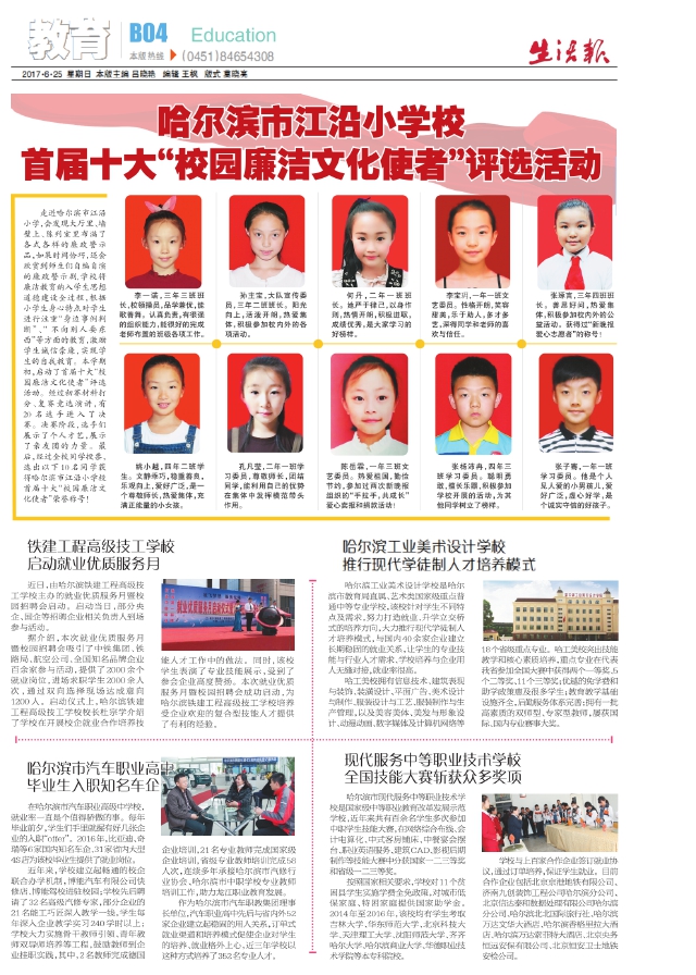 哈尔滨市江沿小学校首届十大“校园廉洁文化使者”评选活动