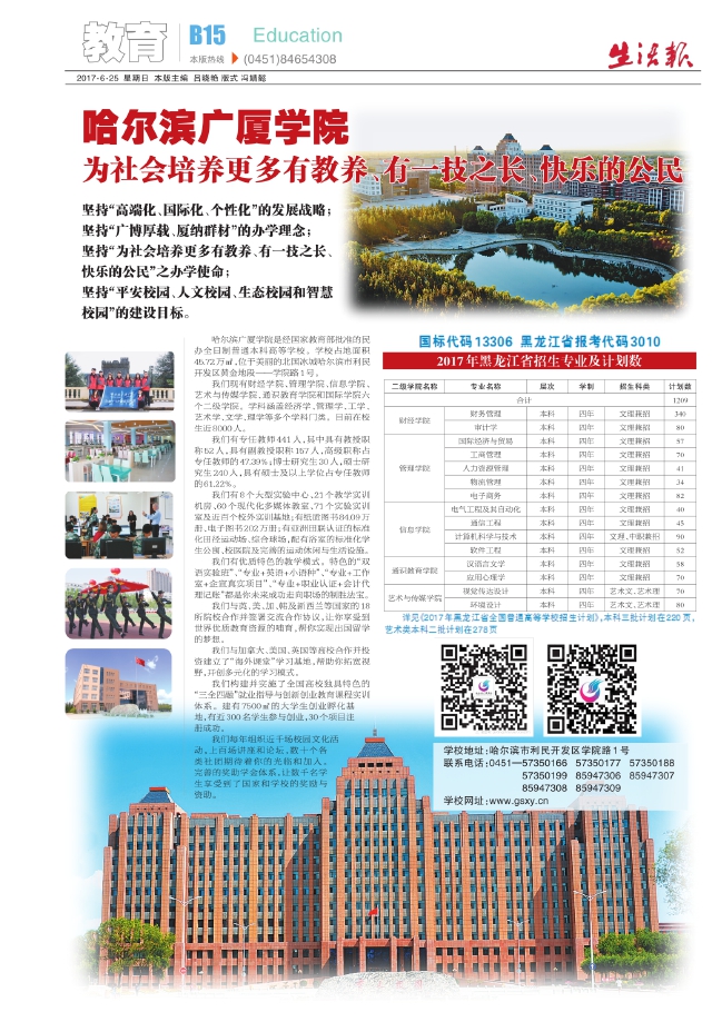 哈尔滨广厦学院为社会培养更多有教养、有一技之长、快乐的公民