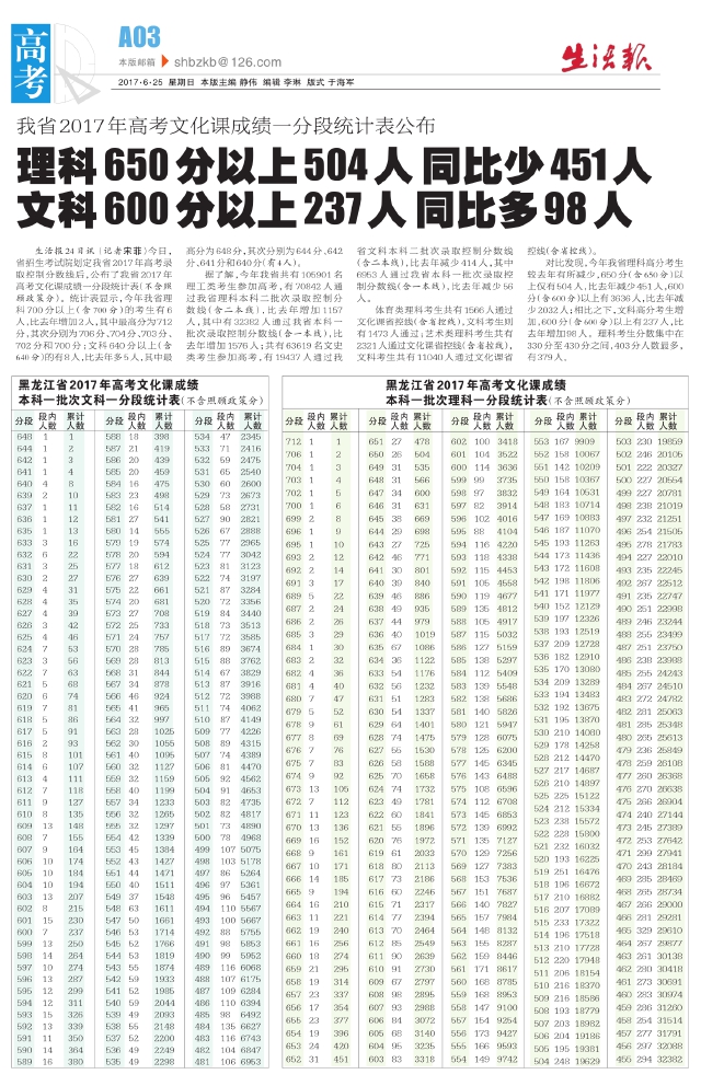 理科650分以上504人同比少451人文科600分以上237人同比多98人