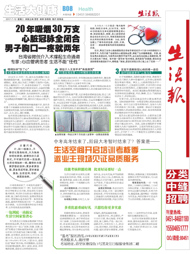 20年吸烟30万支心脏冠脉全闭合男子胸口一疼就两年