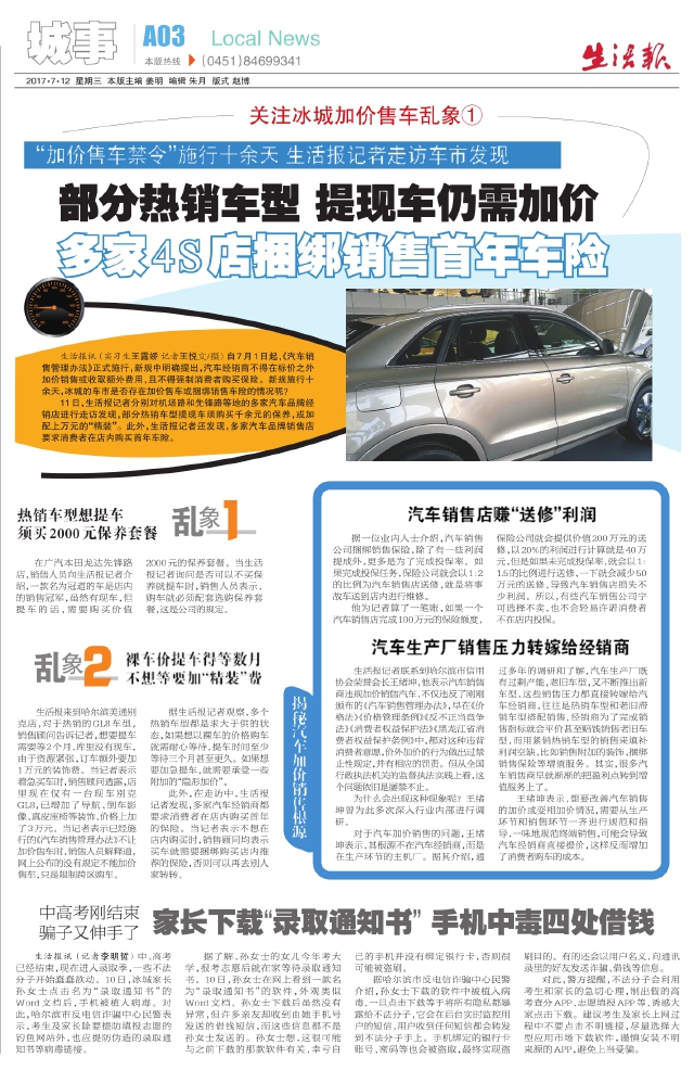 多家4S店捆绑销售首年车险