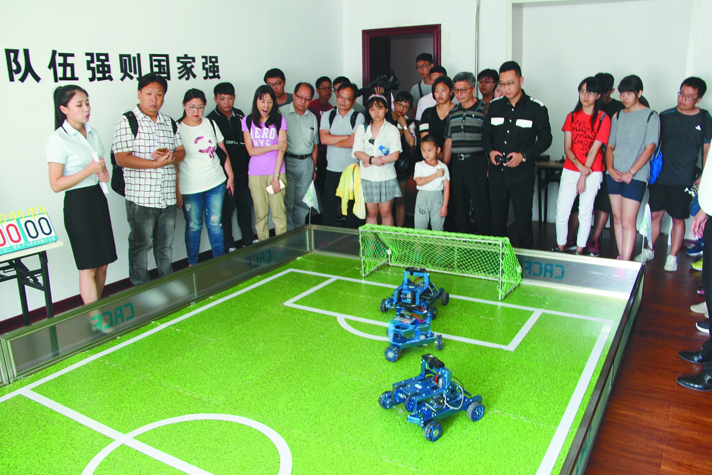 台湾大学生观看机器人足球比赛