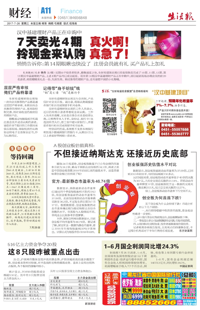 1-6月国企利润同比增24.3%
