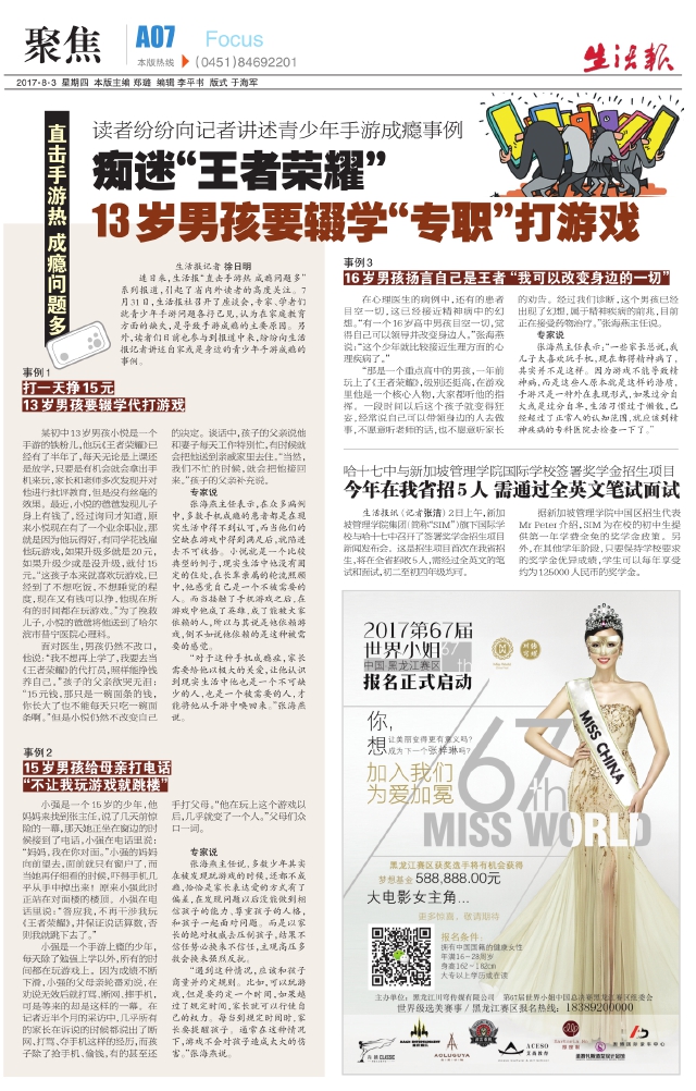 痴迷“王者荣耀”13岁男孩要辍学“专职”打游戏