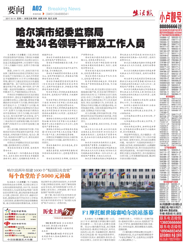 哈尔滨市纪委监察局查处34名领导干部及工作人员