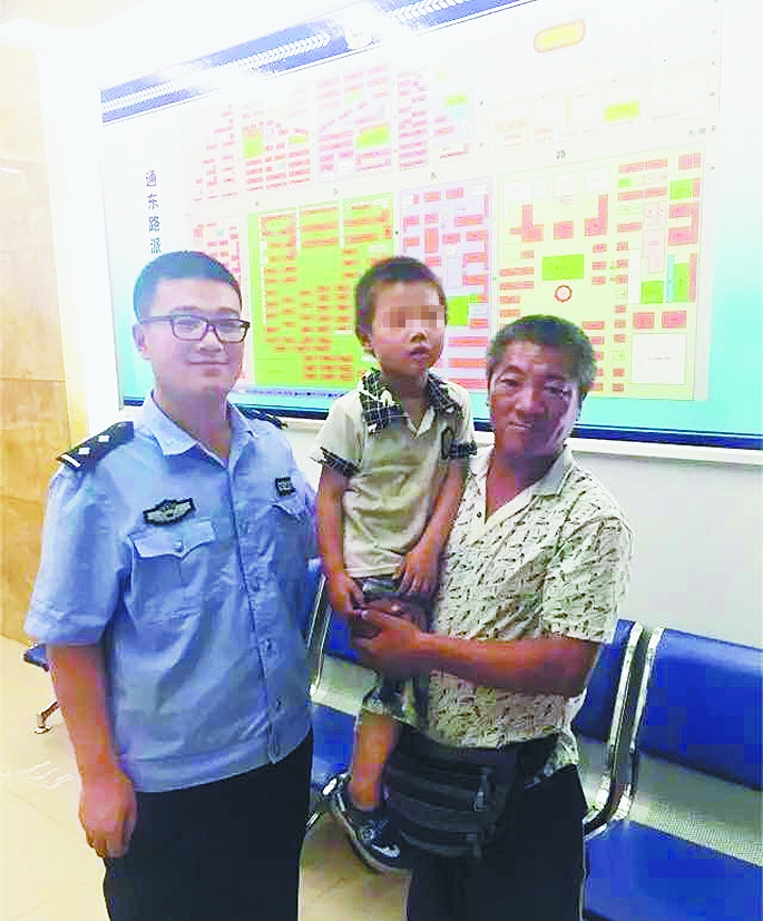 生活报讯(记者黄迎峰)10日晚,一则关于小男孩走失的消息刷爆齐齐哈尔市民的微信朋友圈,民警在大量热心市民的帮助下及时找到孩子家长,上演一场百人“出警”、万人接力的感人画面。 10日19时33分,齐齐哈尔通东路派出所接到辖区群众报案称,人民小区发现一名五、六岁小男孩无家长看管,民警邢云路、于磊、辅警柳文铠迅速赶到现场,见到孩子正坐在椅子上大哭。民警一面安抚,一面耐心询问其姓名及父母信息,但并未获得任何结果,只知道小男孩名叫龙龙。民警立即将情况上报,获得全市范围内警力联动帮助。 随后,民警抱着龙龙走遍附近几个广场寻找父母。一路上,市民们都表现出极大的热心,纷纷将孩子走失的情况发到微信朋友圈。在民警走到铁东夜市附近时,终于有人认得孩子经常在附近玩耍。同时,消息在网上不断发酵,据警方了解,微信朋友圈一个小时内进行了近万次转发。20时30分许,民警接到龙龙家长的报警电话,孩子终于回到父母身边。 据悉,孩子的父亲名叫刘某,家住铁锋区炮台屯,每天带着两个孩子在铁东夜市卖菜,当晚由于生意繁忙无暇照顾小儿子,发现儿子不见时天色已晚,他在市区举目无亲,焦急万分,幸得警方及市民的热心帮助。 父子团聚图片由警方提供