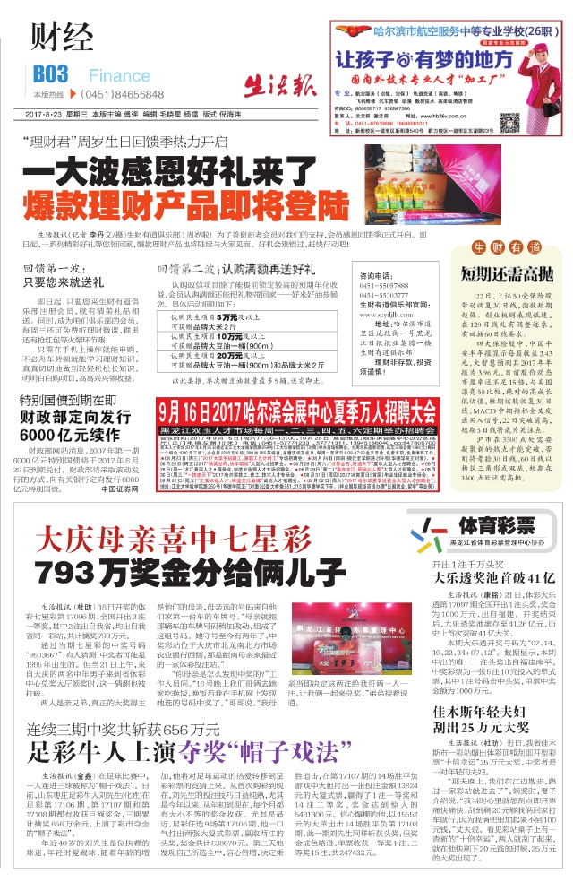 大庆母亲喜中七星彩793万奖金分给俩儿子