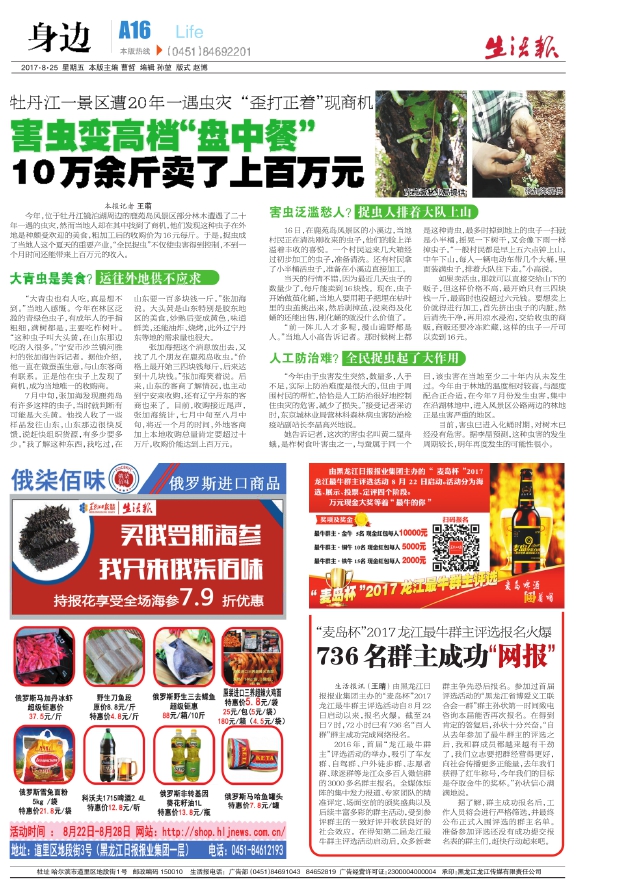 害虫变高档“盘中餐”10万余斤卖了上百万元