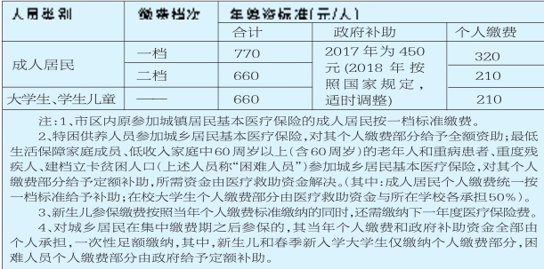 生活报28日讯(记者张洁)哈尔滨市人力资源和社会保障局28日发布了《哈尔滨市城乡居民基本医疗保险参保、缴费须知》,对参保范围、缴费标准等内容进行了明确规定,哈尔滨市人社局提醒,居民医保政策会适时调整,广大参保人员可通过社区、哈尔滨市人社局官网、咨询电话等方式随时了解居民医保政策,按规定办理参保、续保、缴费和就医。哈尔滨市基本医疗保险咨询热线:0451-12333。 关键词一:参保范围 市域内城镇职工医保外所有城乡居民 城乡居民医保参保范围包括市域内除城镇职工基本医疗保险应参保人员以外所有城乡居民。 1、成人居民:年满18周岁,具有本市户籍的城镇非从业居民、农村居民、取得本市居住证的非本市户籍常住人口且未在原籍参加基本医疗保险的城乡居民; 2、大学生:各类全日制高校在校学生; 3、学生儿童:中小学阶段在校学生(含中等专业学校、技工学校、中等职业技术学校、特殊学校就读的在籍学生)、学前教育机构在册儿童、新生儿以及其他具有本市户籍未满18周岁的少年儿童; 4、符合国家和省规定的其他人员。 关键词二:年筹资标准 成人居民分两档缴费 关键词三:办理时间、地点 每年9月1日起集中缴费 (一)集中缴费期 实行年预缴费制度,每年9月1日至12月20日为下一年度个人参保缴费的集中缴费期。 1、成人居民、散居儿童和毕业后两年待业期内大学生在其户籍所在地或者居住地乡镇政府公共服务中心、劳动保障工作站、村委员会(以下简称基层代办点)办理参保登记手续。 2、大学生和学生儿童,由所在学校和学前教育机构统一组织办理参保登记、信息采集及缴费手续。 (二)非集中缴费期 城乡居民在非集中缴费期参保的,需到其户籍所在地或者居住地的基层代办点,办理参保登记手续。 温馨提示: 1、参加城乡居民医保前,先确认是否已参加政府其他形式医疗保险,勿重复参保。 2、城乡居民所在村委会不具备参保登记条件的,可到户籍所在地或者居住地乡镇政府公共服务中心或社区进行参保登记。 3、困难人员每年12月1日-20日持相关证件到原参保基层代办点办理续保手续。 4、参保居民不再续保的,可到原参保所在区医保经办机构办理停保手续,或到银行办理医保解约手续。 关键词四:参保所需材料 非本市户籍居民需提供居住证 本人身份证、户口原件及复印件、他人代办的需提供代办人身份证原件及复印件,16周岁以下的学生儿童还需提供近期免冠白底2寸彩色照片一张。 注:1、困难居民(学生)还需提供民政部门印发有效的《哈尔滨市城市居民最低生活保障证》或《哈尔滨市城市低收入家庭救助证》或《哈尔滨市城市低收入困难家庭救助证》原件及复印件,残联部门印发有效的《中华人民共和国残疾人证》原件及复印件,建档立卡贫困人口提供有效证明等。 2、应届大学毕业生(两年待业期内),还需提供毕业证原件及复印件、哈尔滨市档案管理部门出具的存档证明。 3、尚未落户的出生90天(含90天)内新生儿,需提供其父亲或母亲本人身份证原件及复印件、本市户口原件及复印件、母子健康手册。基层代办点暂以其父亲或母亲的身份证号、×××之子/女和新生儿出生日期进行参保信息登记,落户后持《出生医学证明》、户口原件及复印件到原参保基层代办点进行信息变更。 4、非本市户籍居民还需提供哈尔滨市居住证和户籍地未参保有效证明。 关键词五:缴费方式 学生儿童可由所在学校代收代缴 (一)银行代扣: 新参保居民(不含新生儿)于参保登记当月持基层代办点出具的《哈尔滨市城乡居民基本医疗保险签约扣款凭单》到哈尔滨银行建立“医保签约”账户,足额缴存医保费,待扣缴。未按此规定办理,导致扣款失败的,视同弃保。 出生90天(含90天)内新生儿,于参保登记当日持基层代办点出具的相关手续,到哈尔滨银行营业网点将保费现金存入“现金缴费业务流水号”内,之后再建立哈尔滨银行“医保签约”账户,按规定续存保费。 温馨提示: 城乡居民医保费实行按年预收制,建立“医保签约”账户后,签约周期原则上为一年,期满后未提出变更或解约要求的,视为自动续约。 (二)代收保费: 1、行政村不能通过医保系统为农村居民进行参保登记的,由村委员会统一组织代收保费、开具相关收据,并按规定将保费缴存至指定账户。 2、大学生和学生儿童,由所在学校和学前教育机构统一组织办理参保登记、信息采集及代收代缴学生医疗保险费。 关键词六:医疗待遇启动时间 新生儿自出生之日起享受待遇 城乡居民在集中缴费期内参保登记并足额缴纳医疗保险费的,城乡居民基本医疗保险待遇期限为每年1月1日至12月31日。新生儿按规定足额缴纳医疗保险费的,自出生之日起享受基本医疗保险待遇。新入学大学生按照规定缴费的,自入学之日起享受基本医疗保险待遇。城乡居民在非集中缴费期参保缴费的,自缴费满三个月后享受基本医疗保险待遇。 特别提示: 2017年9月1日启动2018年度城乡居民基本医疗保险参保缴费工作,在集中缴费期内,一是连续缴费的原参加城镇居民基本医疗保险的学生儿童,医疗保险待遇连续享受至2018年12月31日;二是对原参加城镇居民基本医疗保险的成人居民,医疗保险费已缴至2018年且不足一个年度的,按月核定收缴医疗保险费,享受相应医疗保险待遇。