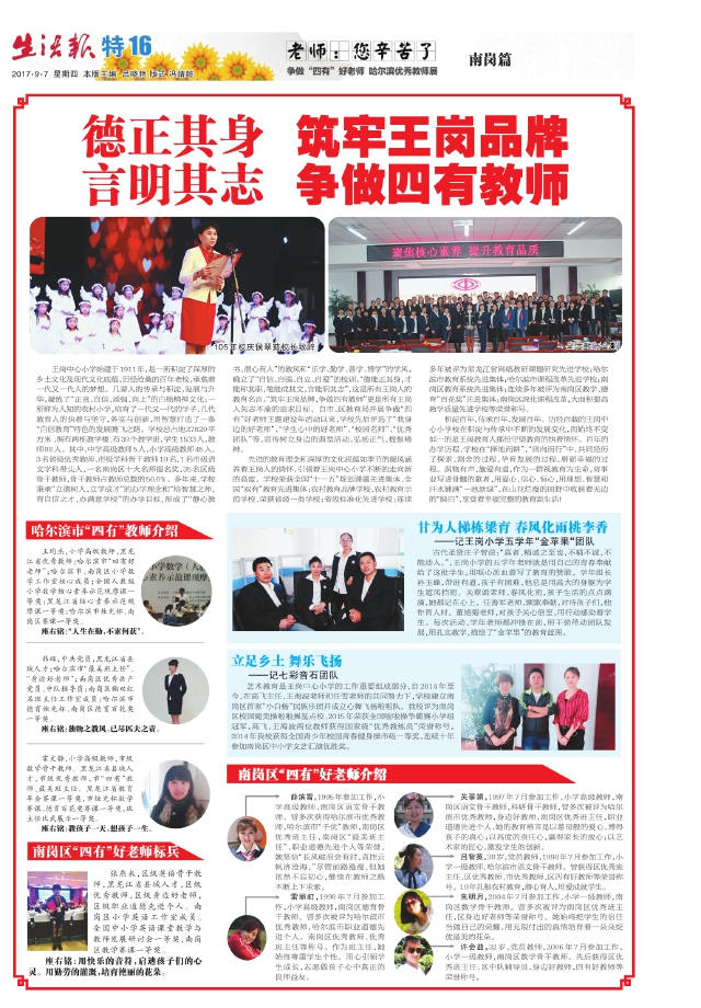 德正其身筑牢王岗品牌言明其志争做四有教师
