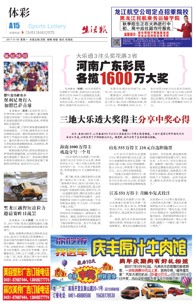 河南广东彩民各揽 万大奖1600