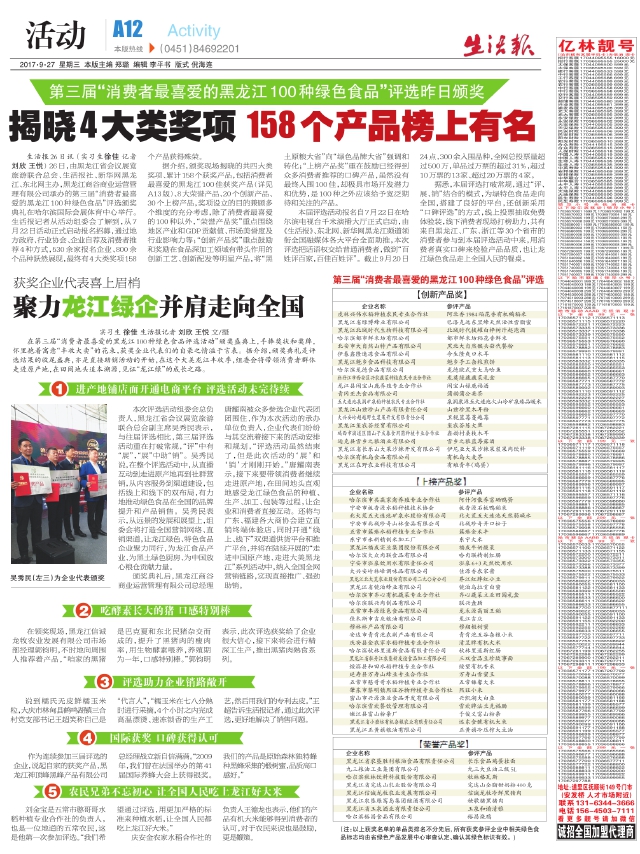 第三届“消费者最喜爱的黑龙江100种绿色食品”评选