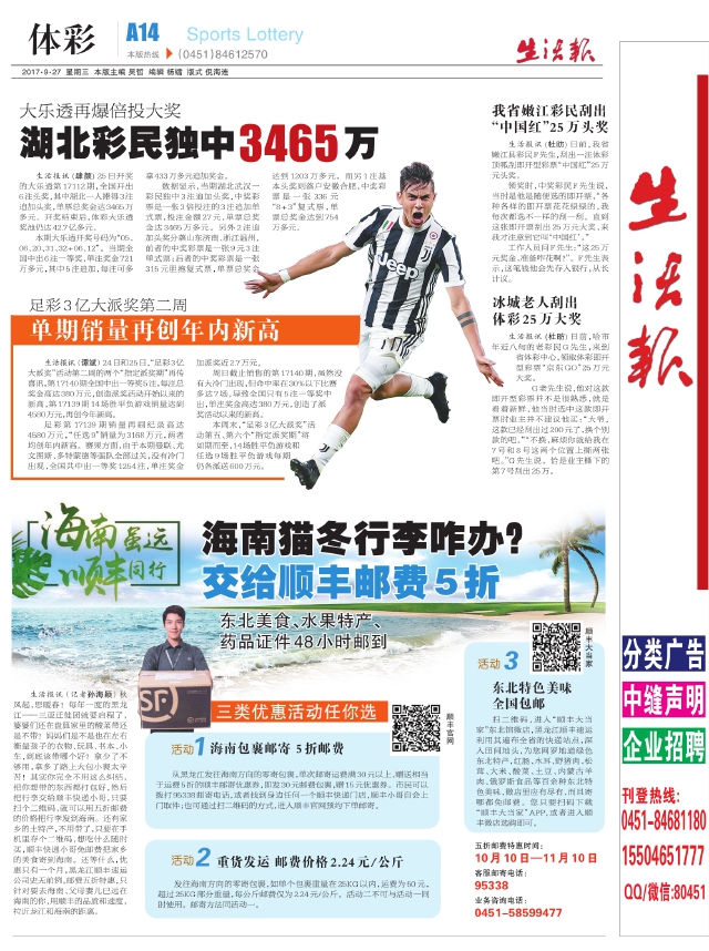 湖北彩民独中3465万