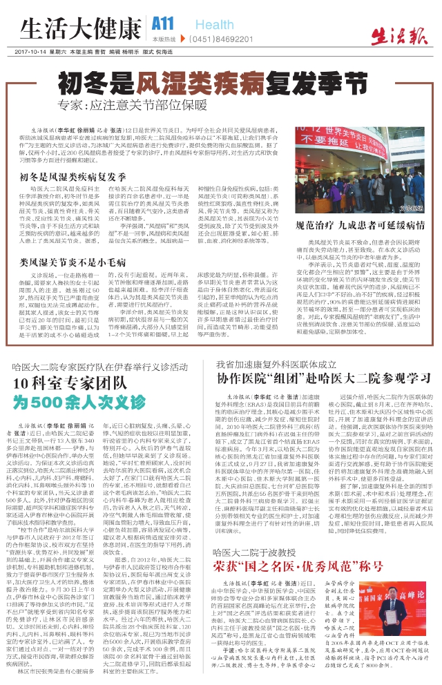 生活报讯(李华虹记者张洁)加速康复外科理念(ERAS)是我国目前具有前瞻性的临床治疗理念,其核心是减少围手术期的创伤应激、减少并发症、缩短住院时间。2010年哈医大二院普外科三病房(结直肠肿瘤及肛门病外科)在迟强主任的带领下,成立了黑龙江省首个结直肠ERAS标准病房。今年3月末,以哈医大二院为核心医院的黑龙江省加速康复外科医联体正式成立,9月27日,我省加速康复外科医联体单位中的齐齐哈尔第一医院、佳木斯中心医院、佳木斯大学附属第一医院、大庆油田总医院、七台河矿总医院等五所医院,共派出55名医护骨干来到哈医大二院普外科三病房参观学习。迟强主任、麻醉科张瑞芹副主任和曲晓菊护士长分别带领相关专业的医生和护士,对加速康复外科理念进行了有针对性的讲座、培训和演示。 迟强介绍,哈医大二院作为医联体的核心医院,截止到8月末,已在齐齐哈尔、牡丹江、佳木斯和大庆四个区域性中心医院,开展了加速康复外科理念的宣讲活动。他强调,此次医联体协作医院来到哈医大二院参观学习,是对之前宣讲活动的一个反馈,同时在真实的病例、手术面前,协作医院能更直观地发现自家医院在具体实施过程中存在的问题,与专家们面对面进行交流解惑,更有助于协作医院能更好的将加速康复外科理念准确地融入到外科手术中,使更多百姓受益。 据了解,加速康复外科是全新的围手术期(即术前、术中和术后)处理理念,在围手术期采用一系列经循证医学证据证实有效的优化处理措施,以减轻患者术后心理和生理的创伤应激反应,从而减少并发症,缩短住院时间,降低患者再入院风险,同时降低住院费用。