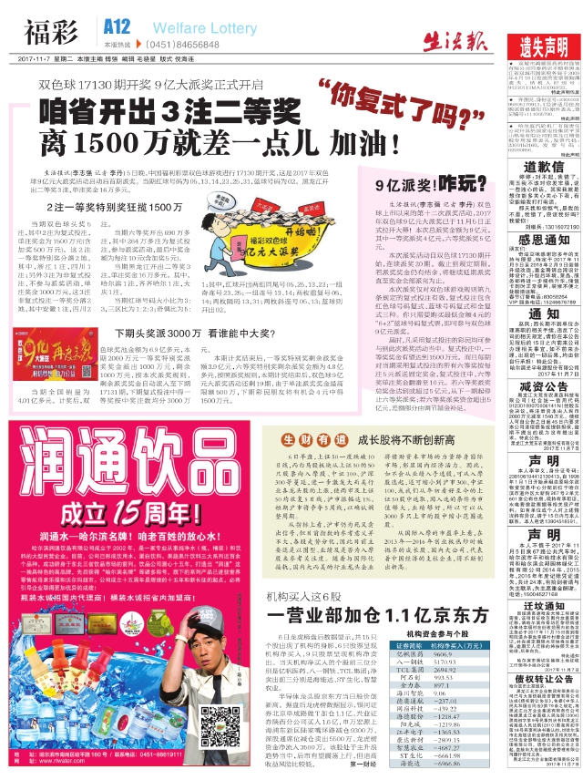 咱省开出3注二等奖“你复式了吗?”