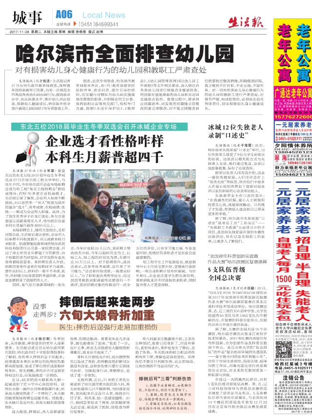 生活报讯(记者于海霞)25日,哈尔滨市失独家庭“口述史”举行,12位失独老人接受了9位大学生访谈员的访谈。访谈员以聊天的方式与失独老人交谈,他们通过笔录、录音以及影像收集、保存了访谈资料。 据项目负责人闫美英介绍,过去一提到失独家庭,人们往往会打上“孤苦无依”等标签,然而他们中很多人在爱心组织的帮助下重新站起来并以更加积极的心态去帮助他人。 失独者常女士在口述时表示:“在我痛苦的时候,爱心人士和组织经常关心我,我被深深触动。只有做了才知道,帮助别人也会给自己带来更多的幸福。” 据了解,哈尔滨市失独家庭“口述史”是省总工会“工助龙江”——“失独职工不孤独”公益项目中的子项目,是面向失独家庭开展的专题性访谈活动,旨在记录失独职工的故事,让更多人了解他们。