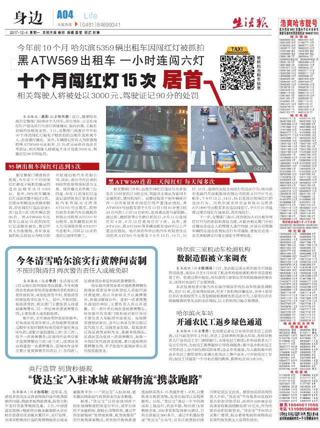 黑ATW569出租车一小时连闯六灯十个月闯红灯15次居首