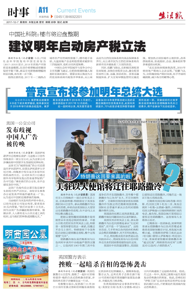 美驻以大使馆将迁往耶路撒冷?