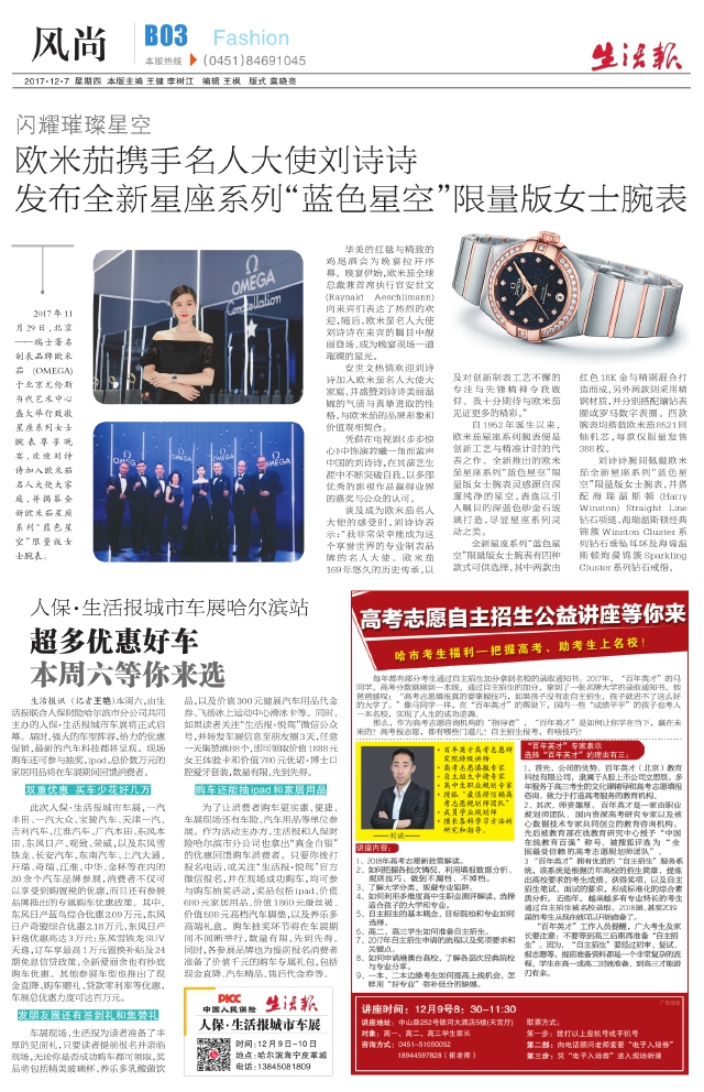 欧米茄携手名人大使刘诗诗发布全新星座系列“蓝色星空”限量版女士腕表