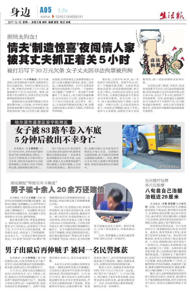 情夫“制造惊喜”夜闯情人家被其丈夫抓正着关5小时
