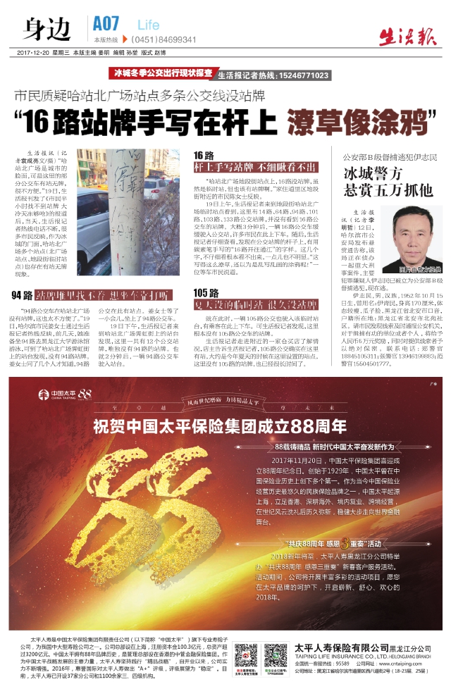 冰城警方悬赏五万抓他