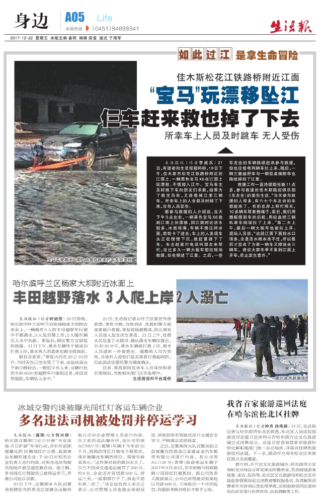 “宝马”玩漂移坠江仨车赶来救也掉了下去