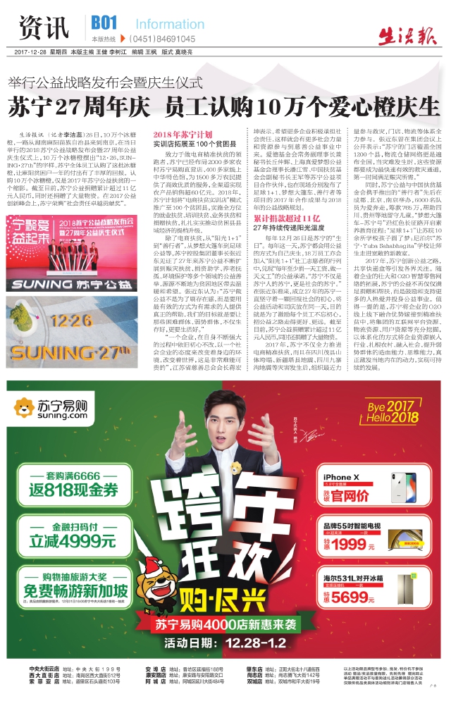 苏宁27周年庆员工认购10万个爱心橙庆生