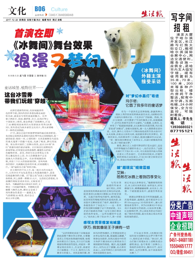 首演在即《冰舞间》舞台效果浪漫又梦幻
