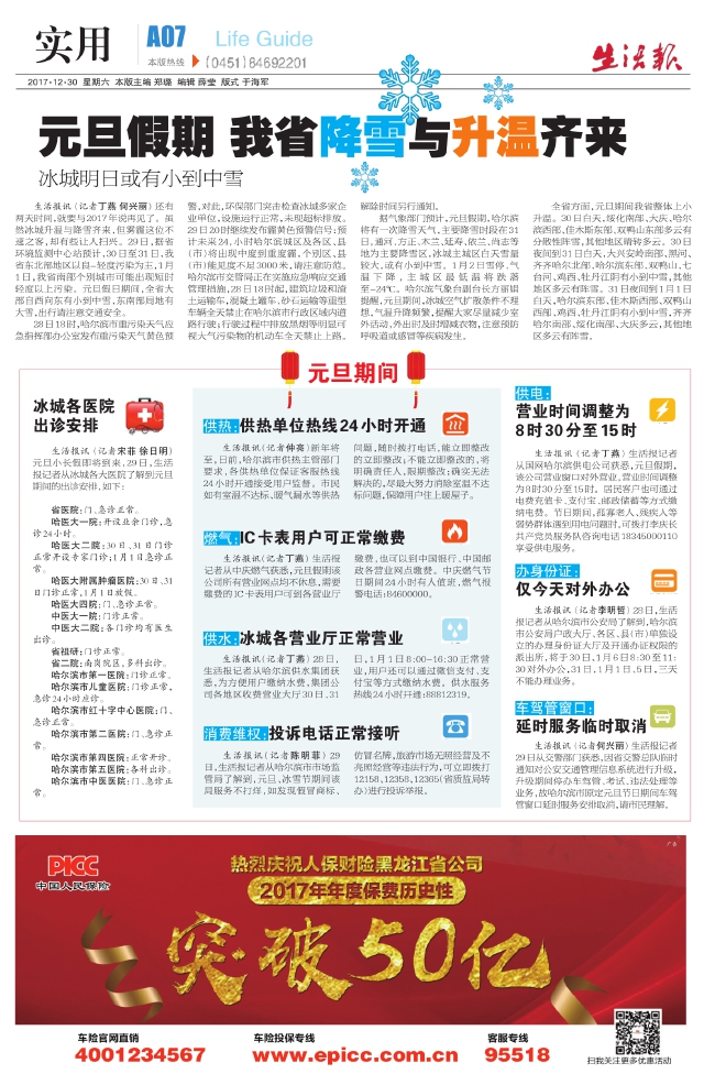 供水:冰城各营业厅正常营业