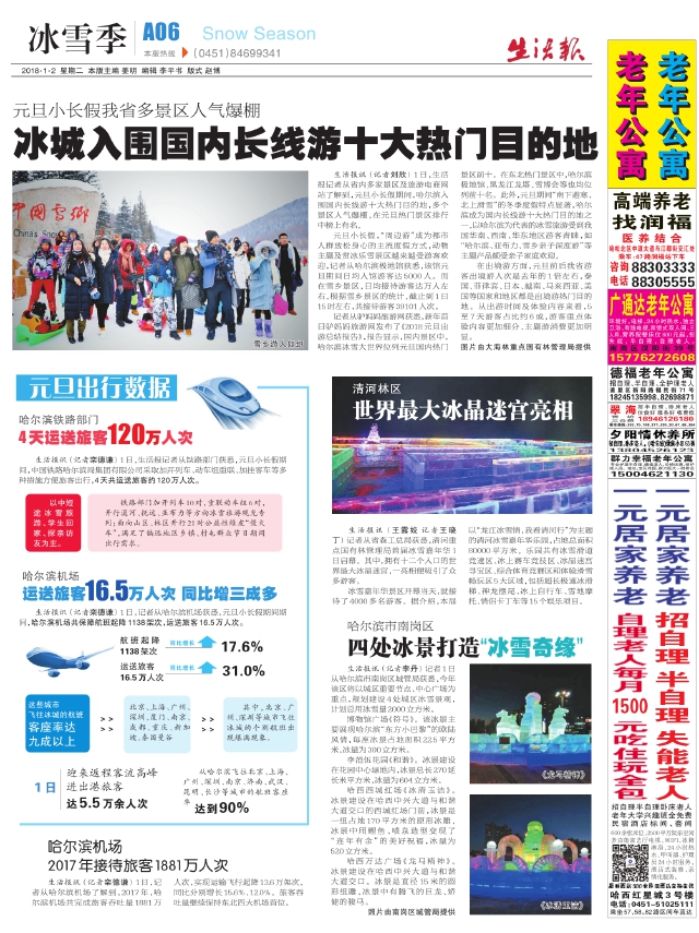 哈尔滨机场2017年接待旅客1881万人次