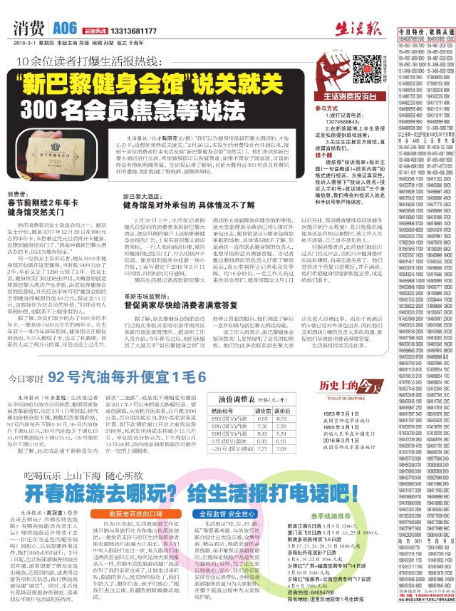 开春旅游去哪玩?给生活报打电话吧!