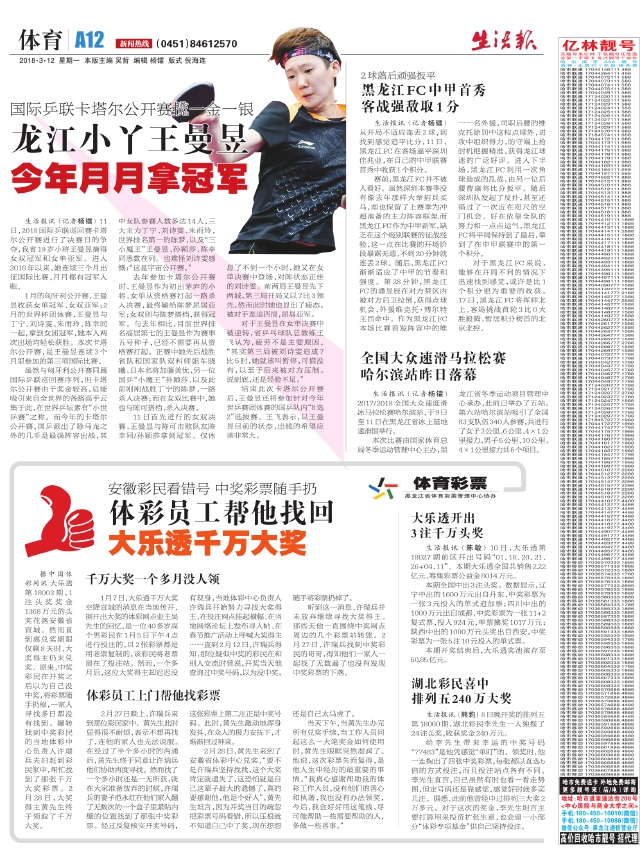 龙江小丫王曼昱今年月月拿冠军