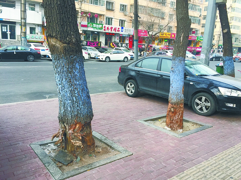 生活报讯(记者张宇驰文/摄)11日,市民孙女士向本报记者反映,在南岗区清滨路24-4号门前的人行道上,有两棵树木的根部受损严重,其中一棵根部的树皮被扒。 10时许,记者来到现场看到,两棵直径约有10多厘米的成年树,根部都已受损,其中一棵较为严重,树皮已经被扒,露出高约20厘米的树干,另一棵根部也已发黄。附近居民孙女士告诉记者,两棵大树已生长多年,不知道是因为生病还是有人故意破坏。但是看着这两棵树的根部受损严重,太心疼了! 随后,记者将情况反映给了哈市南岗区园林局,工作人员表示将马上派辖区绿化看管人员到现场查看处理。